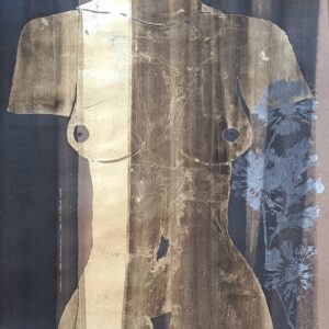 Mais la singularité de l’artiste se situe dans l’entremêlement subtil entre espace géographique et identité féminine qui cherche sans cesse à s’incarner, à la fois éphémère et éternelle. A chaque nouveau territoire, un nouvel enracinement, comme lorsqu’elle s’installe en Toscane et commence à peindre avec le bleu et le doré. Mais c’est dans son travail le plus récent que les silhouettes ou les paysages sont directement inscrits, gravés, peints, tissés, matérialisés, sur un support de cartes géographiques. A travers l’ensemble de son œuvre, Cassandra Wainhouse nous propose une réparation de la contrainte par la présence de son corps échappant ici à l’âpreté de sa condition.